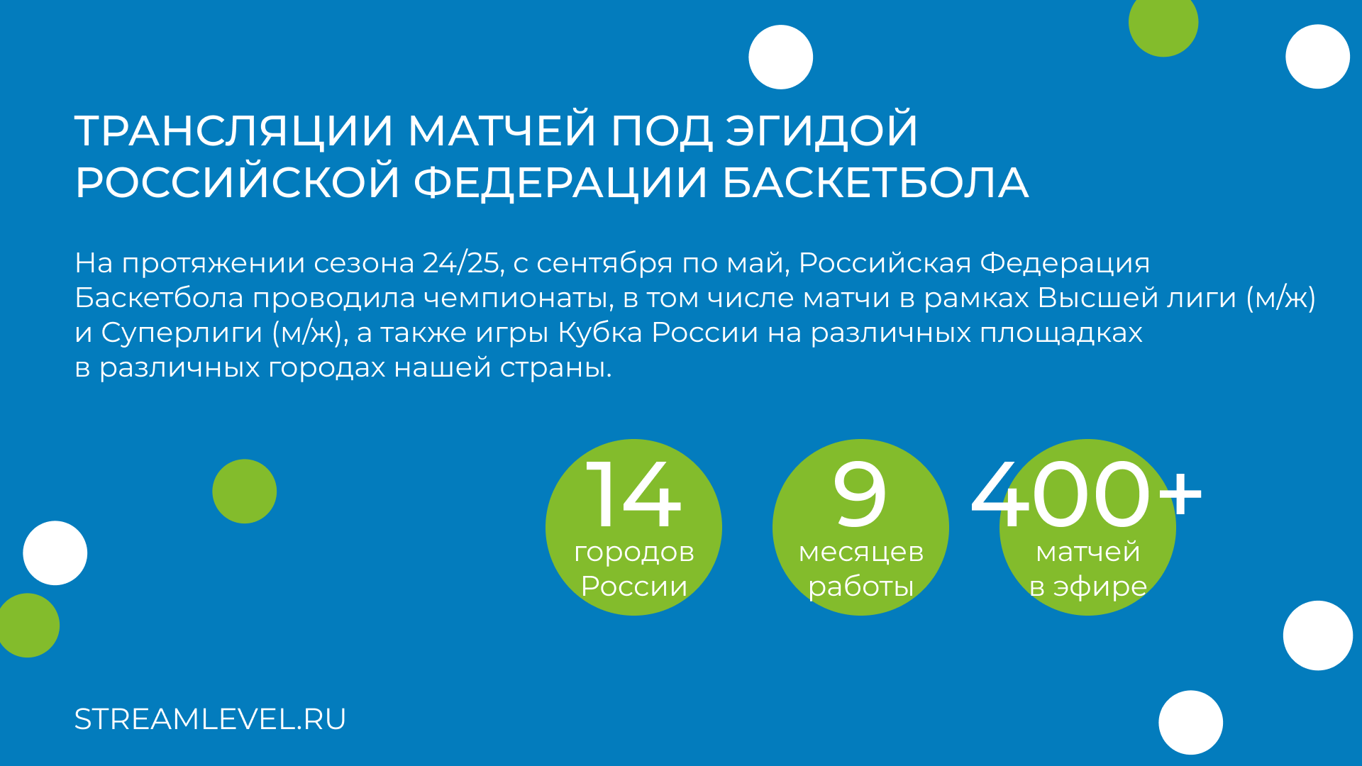За 9 месяцев работы мы показали 400+ матчей в 14 городах России.